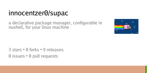 arrow-up119arrow-down1external-linkSupac - a declarative package manager for arch scriptable in nushellplus-squarecodeberg.orginnocentz3r0@programming.dev · 1 month agomessage-square0linkfedilink
