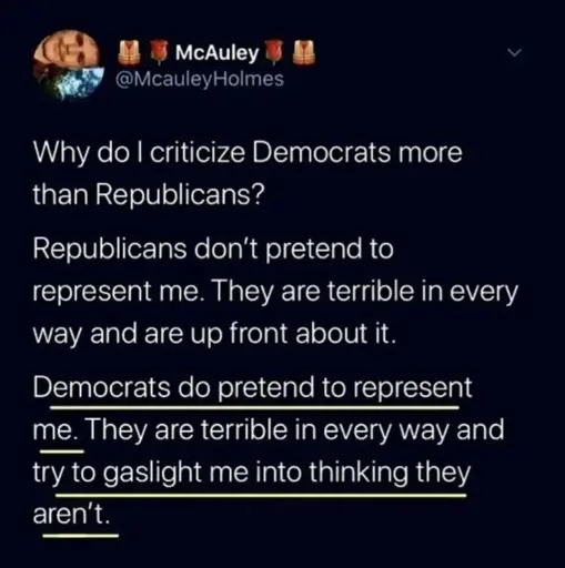 EmpireInDecay@lemmy.ml to Late Stage Capitalism@lemmy.worldEnglish · 1 month agoRepublicans are honest fascists. Democrats are fascists in disguise.lemmy.mlimagemessage-square82linkfedilinkarrow-up12arrow-down10file-text