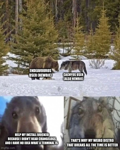 This post is a little cringe. Endeavor OS is a great Arch Experience for those who want a little preconfiguration and a GUI install. I’ve since moved onto doing it the arch way, but EOS was a great foot in the door and I know for a fact I’m not alone. Ive learned more about Linux in 2 years going from EOS to Arch (and running a proxmox server) than I would have running some “beginner friendly” distro. Really wish folks would stop gatekeeping.