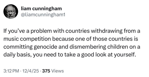 herseycokguzelolacak@lemmy.ml to Europa / Europe and the EU + EEA@lemmy.worldEnglish · 29 days agoSir Davos Seaworth is dispensing justice on Eurovisionlemmy.mlimagemessage-square16linkfedilinkarrow-up1166arrow-down16