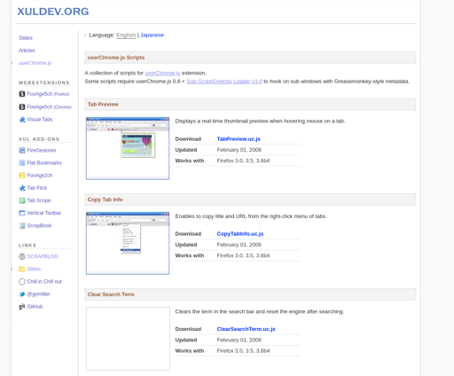 TheTwelveYearOld@lemmy.world to Firefox@lemmy.worldEnglish · 3 months agoFound this very old site for finding userChrome.js (in-browser) scriptslemmy.worldimagemessage-square0linkfedilinkarrow-up19arrow-down12file-text