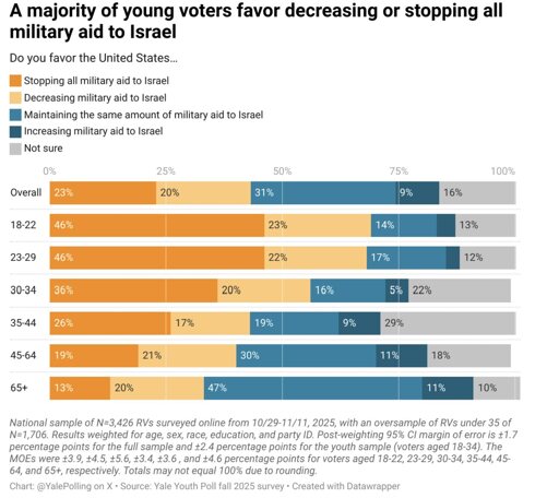 arrow-up186arrow-down1imageMajority of adults under 35 favor decreasing or stopping U.S. military aid to Israel. That figure rises to 69 percent among the youngest adults.lemmy.mlgeneva_convenience@lemmy.ml to Progressive Politics@lemmy.world · 6 days agomessage-square6linkfedilinkfile-text