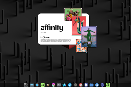 AffinityOnLinux provides an easy way to install and run Affinity Photo, Designer, Publisher, and the unified Affinity v3 application on Linux. The installer automatically sets up Wine (a compatibility layer for running Windows applications) with all necessary configurations, dependencies, and optimizations.
