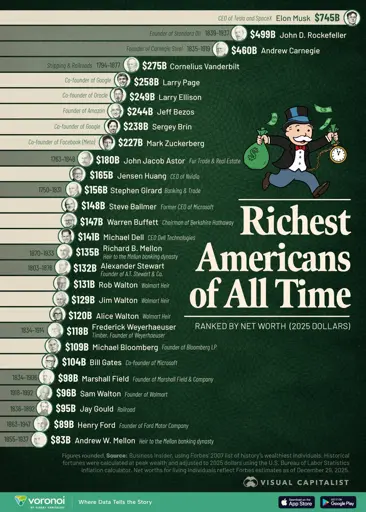 Innerworld@lemmy.world to Economics@lemmy.worldEnglish · 19 days agoRichest Americans in Historywww.visualcapitalist.comimagemessage-square1linkfedilinkarrow-up119arrow-down13cross-posted to: dataisbeautiful@lemmy.world