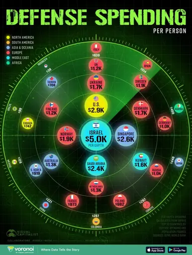 arrow-up119arrow-down1imageDefense Spending Per Capita, by Countrywww.visualcapitalist.comInnerworld@lemmy.world to Data is Beautiful@lemmy.worldEnglish · 15 days agomessage-square3linkfedilink