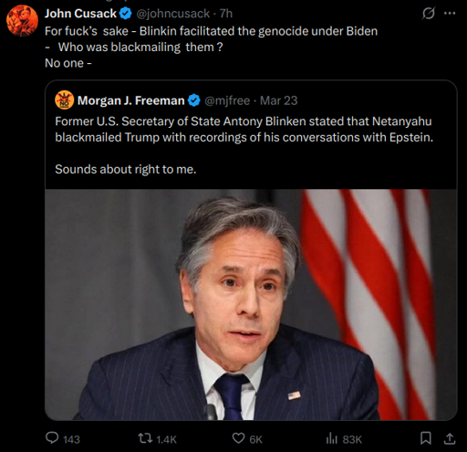 You think that Blinken and Biden facilitating genocide is an alternate reality?