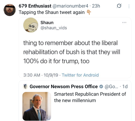 minus-squareAppleTea@lemmy.ziplinkfedilinkarrow-up14arrow-down3·9 days agoThere’s absolutely a strain of liberal discourse that has decided actually Bush wasn’t that bad, and chose to ignore that much of what Bush did was lay the legal and structural groundwork for what Trump is now running rampant with.