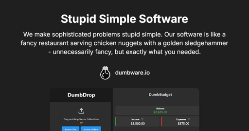 mfat@lemmy.ml to Selfhosted@lemmy.worldEnglish · 10 months agoDumbware.io - Stupid Simple Softwareplus-squarewww.dumbware.ioexternal-linkmessage-square0linkfedilinkarrow-up11arrow-down10